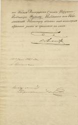 ALEXANDRE II (Alexandre Nicolaïevitch Romanov)Pièce signée. Krasnoe Selo, 9 août 1867 ; 1 page 1/2 in-folio, en-tête imprimé, en russe.Nomination de chevaliers de lOrdre impérial et royal de Saint-Stanislas : Yvegeniy Vasiliev, major du 11e régiment de dragons de Riga de SAI la grande duchesse Yekaterina Mikhailovna, et ancien major du 12e régiment de hussards dAkhtyr de SAR Frédéric Charles de Prusse ; Mitrofan Yavorskiy, capitaine de cavalerie du 11e régiment de hussards dIzium du prince couronné de Prusse, et Vladimir Tukolki, lieutenant du 11e régiment duhlans de Chuguyev du général prince Dolgorukov, etc.