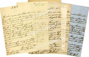 ISABELLE II (Marie-Louise, dite)Correspondance de 6 lettres autographes signées, adressée par Sa Majesté la Reine Isabelle II d’Espagne à sa nièce S.A.I.R. Dona Januaria d’Alcantara, princesse Impériale du Brésil et fille de l’Empereur du Brésil Pedro Ier. En Espagnol.— Bemfica, 30 décembre 1860 ; 1 page in-8°. Voeux de bonne année.— Bemfica, 26 décembre 1862 ; 1 page in-8°. Voeux de bonne année.— Frascati, 10 août 1863 ; 1 page in-8°. « Je suis à Rome pour recevoir la bénédiction Papale le 15 prochain, et je baiserai le pied de Sa Sainteté de ta part.»— Roma, 24 janvier 1864 ; 1 page in-8°. Grâce à Dieu elle est en bonne santé en dépit du froid qui a régné.— Bemfica, 19 janvier 1866 ; 1 page in-8°. Elle souffre de maux de tête, mais les médecins estiment que ce n’est pâs grave. « Ma belle-soeur l’Impératrice a une grippe, mais grâce à Dieu pas grave ».— Bemfica, 1er janvier 1869 ; 1 page in-8°. « J’ai eu des rhumatismes au bras droit qui m’ont assez fait souffrir […]. Quand tu verras la Reine d’Espagne, dis lui mille et mille choses de ma part ainsi qu’au Roi. Dis-moi, est-ce exact ce que disent les journaux ici, que le Roi de Naples est très malade ? »On joint un document signé par François d’Assise de Bourbon [1822-1902], époux de la reine Isabelle II d'Espagne.