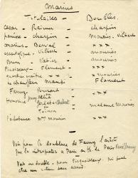 RAIMU (Jules Muraire, dit)Pièce autographe. [1931] ; 1 page in-4°.Casting proposé par Raimu pour l’adaptation cinématographique de Marius.Raimu dans le rôle de César, Charpin dans le rôle de Panisse, Berval dans le rôle de Marius, Vilbert dans Escartefigue, etc.Antonin Berval ne sera pas retenu malgré le soutien de Raimu.