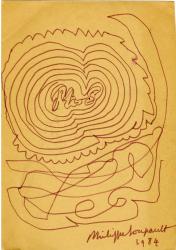 SOUPAULT PhilippeDessin automatique au feutre. Signé et daté 1984. 22,5 x 16 cm.Ce dessin a été offert par P. Soupault à Ré Soupault, sa femme. Il vient de recevoir fac-similé du manuscrit des Champs magnétiques publié par les éditions Lachenal et Ritter. (Archives de Ré Soupault).