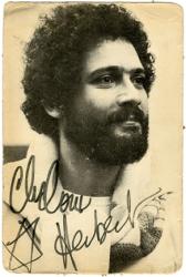 PAGANI Herbert (Herbert Avraham Haggiag Pagani, dit)Photographie dédicacée « Chalom Herbert » avec une étoile de David. 15 X 10 cm, sur carte publicitaire des disques Pathé Marconi.