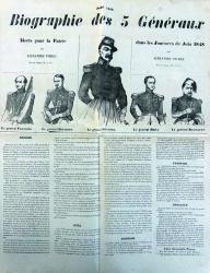 RÉVOLUTION DE 1848.Pièce imprimée. [1848-1849] ; 62 x 42 cm, un peu rognée sur le bord droit avec infime manque de texte. Affiche nécrologique illustrée des portraits des généraux et de l’archevêque de Paris, morts dans les journées de juin 1848 : (Négrier, Dornès, Charbonnel, Martin de Bourgon, François, Damesme, Bréa, Regnault, Duvivier).