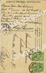THOMSON CésarCarte autographe signée, au dos de sa photographie, adressée à Joseph Debroux. 4 janvier 1908 ; 1/2 page in-16. « Merci mon cher Debroux pour l’envoi de vos sonates qui m’intéressent vivement. »