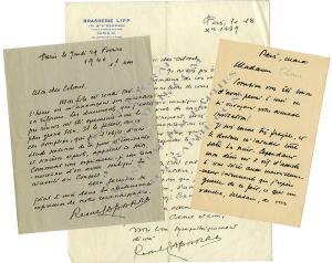 LAPARRA Raoul3 lettres autographes signées. 4 pages formats divers.— À Mme Colonne. Il la remercie de lui avoir envoyé une invitation. « Je suis encore très fragile, et le docteur m’interdit toute sortie la nuit. Cependant mon désir est très vif d’assister à une soirée aussi merveilleusement intéressante que j’espère guérir de ce fait,ce qui me vaudra, Madame, de vous remercier deux fois. »— À un colonel. Sur son fils qui est maintenu en réforme, etc.
