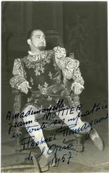 ROMAGNONI RaphaëlPhotographie signée, dédicacée à Mlle Jeanne Mottier. 1957 ; 14 x 8,8 cm.
