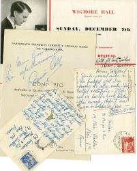 PIANISTES.4 documents signés : BROCKMAN Thomas, pianiste. 2 cartes autographes signées et 1 programme signé. COLL Ramon, pianiste. Programme signé (interprétations de balades de Chopin).