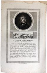 BEURNONVILLE Pierre Riel, marquis deBelle gravure, avec son portrait dans un cercle, gravée par Charles Francois Gabriel Levachez. Avec un texte biographique en dessous. XIXe siècle ; 48,5 x 31 cm. Mezzotinte dessinée et gravée par Jean Duplessis-Bertaux à partir de sa collection complète de 60 portraits des personnages qui ont le plus figurés dans la Révolution française.