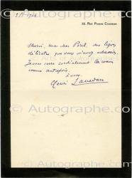 LAVEDAN HenriLettre autographe signée, adressée à M. Porel. [Paris,] 3 janvier 1904 ; 1/2 page in-8°, sur papier de deuil. « Merci, mon cher Porel, des lignes délicates que vous m’avez adressées. Je vous serre cordialement la main comme autrefois. »