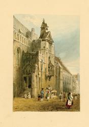 ÉCOLE FRANÇAISE DU XIXe. SAINT-OMER.Aquarelle. XIXe siècle. Une inscription ancienne au dos : « St Omer ». Il s'agit de l'ancienne halle échevinale détruite au début du XIXe siècle. 12,8 x 8,8 cm.