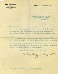 SOUPAULT PhilippeLettre signée, adressée à Lucien François. Paris, le 13 janvier 1928 ; 1 page in-4°. « J’attends donc votre revue et dès que je l’aurai regardée, je vous enverrai quelque chose qui me paraîtra plus intéressant pour vous. Je serai très heureux de faire une conférence à Bruxelles mais pour les conditions, je vous avoue très franchement, cela m’est très difficile de vous fixer, je ne connais ni le prix du voyage ni le prix des Hôtels. »
