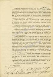 FÉVAL PaulContrat préimprimé complété et signé, entre Paul Féval et les Fils de Bernard Merzbach, banquiers. Paris, 24 mars 1908 ; 2 pages in-8°. Sur papier timbré (perforation affectant quelques lettres imprimées au verso).Contrat d’exclusivité d’exploitation cinématographique qui stipule que « M. P. Féval s’engage à ne fournir qu’à MM. Les Fils de Bernard Merzbach ou à la société qu’ils se substitueront, des canevas de scènes destinées à être adaptées et reproduites en projections cinématographiques » et autorise ladite société à « fabriquer, établir, éditer, vendre ou louer les bandes cinématographiques [...], d’en organiser ou autoriser des représentations publiques en quelques pays que ce soit, comme aussi de publier, soit en langue française, soit en langue étrangère, sous forme de programmes ou de catalogues, un argument abrégé desdites scènes. » Suivent, les détails de la manière de procéder convenue, et du calcul des droits. Mention ajoutée à l’encre en marge ; « Pouvoirs annulés par traités du 3 nov. 1913 ».