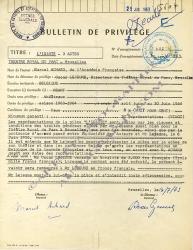 ACHARD MarcelPièce signée. Bruxelles 16 juillet, 1963 ; 1 page in-4°. Bulletin de privilège signé pour l’adaptation de sa pièce L’Idiote, au Théâtre Royal du Parc de Bruxelles pour la saison 1963-1964.