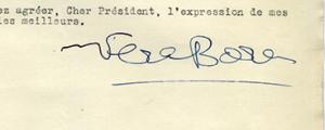 BOREA Vera (comtesse di Regoli)Lettre signée, adressée à André de Fouquières. Paris, 12 avril 1955 ; 1 page in-4°. En-tête imprimé « Vera Borea Couture ». Belle lettre : « Je suis heureuse de vous donner mon accord pour la reconduction de mon contrat de directrice-modéliste qui expire le 31 octobre 1955. Et jen accepte la reconduction provisoire dans les conditions actuelles. »
