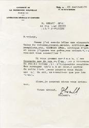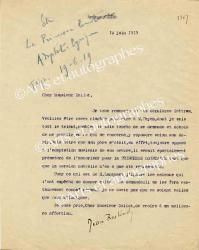 ROSTAND JeanLettre signée, adressée à M. Ballot. Arnaga, Cambo, 14 juin 1919 ; 1 page in-4°. « Outre que mon père s’était en effet, toujours opposé à l’adaptation musicale de son œuvre, il serait spécialement prématuré de l’autoriser pour la Princesse lointaine tant que la version nouvelle n’en a pas été représentée. »