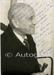 BERNARD ArmandPhotographie dédicacée. 23 x 17,4 cm. Photographie du studio Piaz à Paris. « Pour Walter Wottitz mon très amical souvenir, Armand Bernard. ».