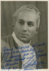 LIBERO DE LUCAPhotographie dédicacée. 17,57 x 12,4 cm. Dédicace en italien au Maestro L. Musy.