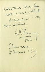 MAURRAS CharlesLettre autographe signée depuis la prison de Clairvaux. 6 décembre 1949 ; 2 pages in-4°. Charles Maurras avait été arrété à la libération à la réclusion criminelle à perpétuité et à la dégradation nationale. Puis gracié pour raison de santé en mars 1952. « Ainsi je vous dois cette visite, trois fois inespérée de Jacques et ce bon flot de bon air et de bonnes nouvelles qu’elle m’a apporté! »