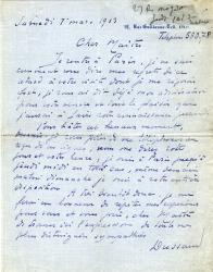 DUSSAUD FrantzLettre autographe signée. Samedi 1er mars 1913 ; 1 page in-4°. « Je rentre à Paris [ ]. Je vous ai dit déjà mon admiration pour votre uvre et tout le plaisir que jaurai à faire votre connaissance personnelle. [ ] Je me ferai un honneur de répéter mes expériences pour vous. »