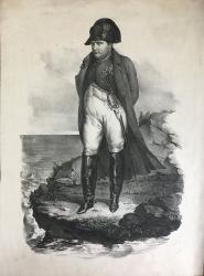 NAPOLÉON Ier (Napoléon Bonaparte)Napoléon à Sainte-Hélène, face à la mer. Gravure datée 1819 dans la planche. XIXe siècle; 49,5 x 36,3 cm, légères piqures.