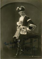 ARKOR André d (Arsène Van Ham, dit)Photographie d'époque dédicacée. Théâtre de la Monnaie, Liège, 1933 ; 22,3 X 15,7 cm. « Pour Madame Rousseau, meilleur souvenir ». Photographie représentant le ténor dans le rôle de Georges Brown (La Dame blanche). Photographie de R. Marchand à Bruxelles.