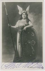LITVINNE Félia (Jeanne Schütz, dite)Photographie signée. 14 x 9 cm. Photographie la représentant en costume wagnérien. Carte postale de la collection Coquelin. Très beau cliché.