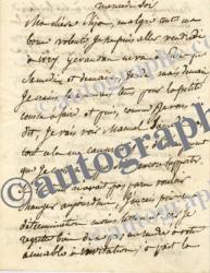 BÉRANGER Pierre-Jean deLettre autographe signée, adressée à Mme Fabreguettes. « Mercredi soir » ; 3 pages in-16, adresse sur la 4e page. Il regrette de ne pouvoir se rendre à l’invitation qu’elle lui propose. « Je suis bien fâché de savoir votre oncle toujours souffrant. Témoignez-lui mon chagrin. Mille tendresses à votre tante. […] Je suis bien aise de vous voir décidée à essayer le lait d’ânesse. Pourtant faites-le avec précaution […]. Voyez, il y a trois ou quatre ans, je n’aurais pas marchandé ainsi pour vous aller voir. »
