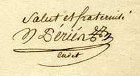 PÉRIÈS JacquesEnsemble de deux documents.— Lettre signée 13 frimaire an V. Concerne le paiement de 1200 quintaux d’avoine.— Rapport concernant la restitution d’une somme de 7700 # au citoyen Landremont (copie conforme) avec quelques lignes signées de Landremont en vis à vis de la première page.