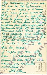 CARZOU JeanCarte autographe signée, adressée à Raymond Nacenta, directeur de la galerie Charpentier. Sans date ; 90 x 140 mm, trous d’archivage. « Je passe mon été sur la Côte normande où je me repose de l’année parisienne. Je suis encore très fatigué. J’ai vu avec plaisir, dans la presse, que Brayer avait accepté de vous faire […] moderne pour votre exposition des chemins de fer. Il s’en tirera sûrement avec brio. Je vous prépare une belle toile inspirée par les chemins de fer pour la section peinture. »