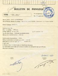 MONTHERLANT Henry Millon deBulletin de privilège signé. Genève, 21 avril 1971 ; 1 page in-4°. Contrat signé entre Henry de Montherlant et M. Volter, directeur de la Compagnie, pour sa pièce Port-Royal.