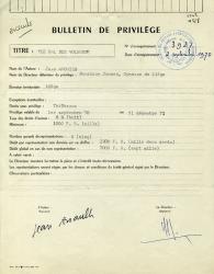 ANOUILH JeanPièce signée. 2 septembre 1970 ; 1 page in-4°. Bulletin de privilège pour Le Bal des Voleurs, octroyant lautorisation de jouer la pièce au Gymnase de Liège.