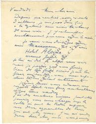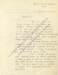 ASSELIN MauriceLettre autographe signée, adressée à Raymond Nacenta, directeur de la galerie Charpentier. « Vendredi » ; 1 page 1/2 in-4°, trous d’archivage. « Je veux vous dire que mon ami Mainssieux est à Paris […]. Je lui ai dit d’aller vous voir mais je pense que vous feriez bien de lui faire écrire pour lui fixer un rendez-vous. Une exposition de lui serait intéressante. […] J’ai des amateurs suisses. Peut-être pourriez-vous sans charger trop la salle où sont les Rodin exposer mes deux aquarelles de Paris qui sont chez vous. »