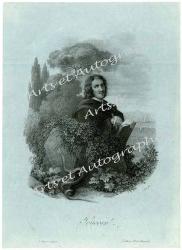 POUSSIN NicolasPortrait du peintre. Lithographie du XIXe sur papier bleu d’après le portrait de Girodet gravé par Sudre.24,5 x 17,8 cm