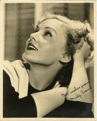 EVANS MadgePhotographie autographe signée [dédicacée à Lina Wolf]. 25 x 20 cm. « Best wishes from Madge Evans ». Photographie la représentant en buste.