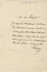DUMAS Jean-BaptisteLettre autographe signée. Sans date ; 1 page in-8°. « Je croyais que vous deviez reprendre chez moi votre projet ; je lavois revu en conséquence. Veuillez le faire recopier dun seul côté et à mi-marge. Jai besoin de le relire, après quil aura été mis au net. »