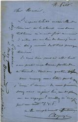 JACQUE Charles ÉmileLettre autographe signée, adressée à M. Petit. Sans date ; 1 page in-8°. « L'impossibilité matérielle de terminer sur le champs mes deux tableaux m'en ont fait commencer d'autres et au lieu de deux, j'en ai cinq avancés dont trois presque terminés. Je crois bien pouvoir aller lundi vous porter une bonne partie de ce travail, trois ou quatre tableaux. Vous recevrez une lettre par laquelle j'aurai l'honneur de vous prévenir. »