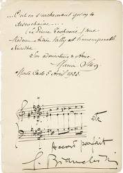 BIANCHINI GuidoPortée musicale autographe signée [à la cantatrice Andrée Vally]. [1923] ; 1 page in-12. Issue d'un carnet amicorum d'Andrée Vally.