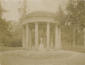 PHOTOGRAPHIE.Photographie sur papier albuminé. Fin XIXe siècle ; 20,7 x 27 cm. Photographie ancienne d'une rotonde dans un parc arboré parisien. Au dos cachet violet : Vues de Paris. F Helaine.