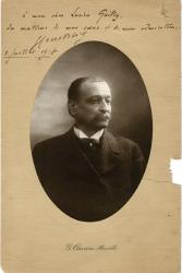 COURTELINE Georges (Georges Moinaux, dit)Sa photographie avec un envoi autographe signé, sur le support à Lucien Guitry. 1 juillet 1918 ; 21 x 14 cm, manque de papier sur la droite avec petite fente (photographie intacte) « À mon cher Lucien Guitry, du meilleur de mon coeur et de mon admiration Courteline. »