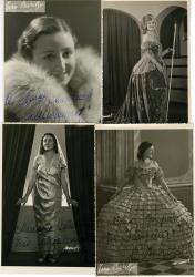 TINA BARITZA (Albertina Motteu, dite)Ensemble de 5 photographies dédicacées, Liège : 4 photographies représentant la soprano dans les rôles de Lakmé, Violetta (La Traviata), prises par le photographe Zanoli. 17,5 x 11,7 cm. 1 photographie de carte postale dédicacée « En souvenir », dans le rôle de Victoria. Photographie de Tasquin Edouard. On joint un cliché carte postale non signé dans le rôle de Mimi (La Bohème).