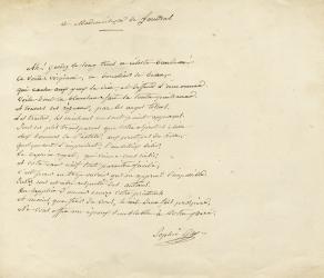 Poème autographe signé, dédicacé à Mademoiselle de Jondras