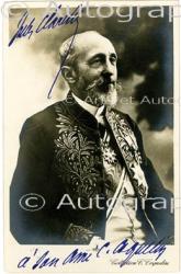 CLARETIE JulesPhotographie signée à l’encre violette, dédicacée à C. Coquelin. 90 X 135 mm. Carte postale de la collection C. Coquelin. « Jules Claretie À son ami C. Coquelin ». Photographie de J. Claretie en habit d’académicien. Très jolie pièce.