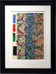 DELAUNAY SoniaProjet de tissu.Gouache sur papier.Monogrammée en bas à droite.38 x 26 cm.Cachet du fond Robert Perrier et annotation manuscrite « inventaire supplémentaire le Manech’Tours », réf AL au dos.