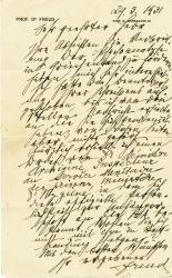 FREUD SigmundLettre autographe signée adressée à un jeune homme. Vienne 29 Mars 1931 ; 1 page in-8°. En-tête imprimé « Dr. Freud » en haut à gauche, et « Wien, IX., Berggasse 19 » en haut à droite, une page, en allemand.Freud répond à une lettre dun jeune homme qui pensait devenir médecin, et exprime son intérêt pour un voyage en Grèce que le jeune homme fait avec sa fiancée. Freud a une lettre de M. Déridère, qui est linspecteur en chef de lhygiène pour les sanitaires administration pénitentiaire et veut savoir si le jeune homme va rencontrer le Dr Déridère. Il termine la lettre : « Avec mes meilleurs vux, votre dévoué Freud.»Rare.