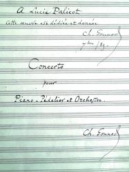 GOUNOD CharlesManuscrit musicale autographe signée intitulé « Concerto pour piano - pédalier et orchestre » avec envoi autographe « A Lucie Palicot cette oeuvre est dédiée et donnée septembre 1889 ». 133 pages in folio plus page de titre. Partition d’orchestre de ce rare Concerto pour piano-pédalier [CG 534]. L’œuvre fut exécutée le 6 février 1888 à Angers pour l’Association artistique, et le 4 avril 1890 au Châtelet sous la direction de Gounod dont ce fut le dernier triomphe public. Sur ce Concerto, en mi bémol majeur, on lira l’intéressante analyse de Gérard Condé (Charles Gounod, Fayard, 2009, p. 881-883), à laquelle nous empruntons quelques phrases. Il se compose de quatre mouvements : –Allegro moderato d’un « héroïsme beethovenien : des arpèges conquérants montent à l’assaut des degrés de la gamme […] Le soliste fait son entrée dans le silence ; 12 mesures d’arpèges brisés au seul pédalier »… ; Scherzo en sol mineur à ¾ ; Adagio ma non troppo en ut mineur à C, « une sorte de marche funèbre » ; Final (Allegro pomposo) à 6/8, revenant en mi bémol majeur : « Le rôle plus important des timbres de l’orchestre, le brio de l’écriture du clavier, la verve rythmique soutenue, assurent à ce final une indéniable efficacité ». Le manuscrit est complet ; la partie de piano-pédalier a été mise au net par un copiste, l’orchestration est entièrement de la main de Gounod. Gounod refusa de faire éditer ce Concerto de son vivant, considérant que son éditeur Leduc louait trop cher les partitions de ses œuvres, freinant ainsi leur diffusion ; il fit don de sa partition à Lucie Palicot, pour lui en assurer l’exclusivité.