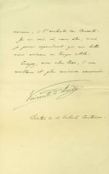 INDY Vincent d’Lettre autographe signée. « Lundi matin » ; 2 pages 1/2 in-16. Il annonce à son « cher Émile » qu’il ira le visiter « jeudi prochain pour plusieurs raisons, d’abord pour avoir le plaisir de vous serrer la main, et en second lieu pour vous apporter 2 violons un premier et 1 second qui vous réclament à grands cris. Blague à part, j’ai pondu cet été une Ouverture et je serais bien désireux d’avoir mes parties en quatuor autographiées le plus tôt possible, pour beaucoup de raisons. Si donc vous avez quelque grand ouvrage en train, je compte sur vos moments perdus entre une étude à l’huile d’après nature et une expérience chimique sur la grue à double pressoir […] pour me faire passer mes pauvres violons. »