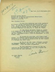 MASSINE LéonideLettre signée. New York, le 28 septembre 1929 ; 1 page in-4°. Lettre sur la mort de Diaghilev et dans laquelle il évoque le versement des droits qui lui sont dus notamment aux représentations d’Ostende en 1928, à celles de Vichy en août 1929. « La fin de l’été nous a vraiment apporté un événement tragique, dans la mort de notre cher ami Diaghileff ! C’est une perte irréparable ! »