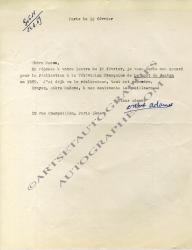 ADAMOV ArthurLettre signée, adressée à Mme Suzanne Arnoux. Paris, 22 février [1969] ; 1/2 page in-4°. « En réponse à votre lettre du 18 février, je vous donne mon accord pour la réalisation à la Télévision Française de La Mort de Danton en 1969. J’ai déjà vu le réalisateur, tout est en ordre. »