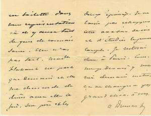 DUMAS Fils (Alexandre Dumas, dit)Lettre autographe signée, adressée à une femme. Sans date ; 1 page 1/2 in-8°. « Je ne suis jamais allé le mardi même à la campagne. J’ai toujours quelques amis qui dînent chez moi ce jour là, et maintenant que Mad. Dumas est souffrante, ils font le voyage de Marly avec moi à 5 h.50. Je n’en suis pas moins fautif. J’aurais dû réserver encore ce jour là avec ceux que j’avais désignés à Legouvé ».