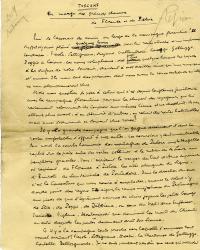 SCHNEIDER ÉdouardManuscrit autographe signé « Toscane - en marge des grands chemins de Florence et Pistoie ». 4 pages in-4°.« Qui se lasserait de courir eu large de la campagne florentine ? Il suffit déjà d’y avoir flâné quelques heures pour lui rester attaché d’une impérissable tendresse. Fiesole, Settignano, Majano, Vallombrosa, Careggi, Galluzzo, Poggio a Caiano, ces noms voluptueux, dès que quelque hasard les rejette à la surface de notre souvenir, chantent à nos oreilles ainsi qu’une musique d’amour. Ils nous sont des présences dont nous avons la docue certitude qu’elles ne nous abandonnerons plus ».