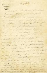 BIOT Jean-BaptisteLettre autographe signée, adressée à M. Gaimard. 10 septembre 1839 ; 1 page in-8°. En-tête imprimé « Commission scientifique du Nord ». Amusante lettre sur un voyage et sa confrontation aux intempéries. Il y est question d’une boussole que n’ont pas su utiliser des voyageurs « au milieu des embarras que la brume, la pluie et les marais ». « Ma bonne petite Léonie a très bien supporté les événements de la route, seulement elle est faible et comme nous aurions des rivières trop hautes à traverser, nous allons prendre un bateau […]. Il nous est tombé et il va tomber encore des averses à ne pas mettre un chien dehors. Nous avons bu à votre santé et à tout le monde à neuf heures et demi. »